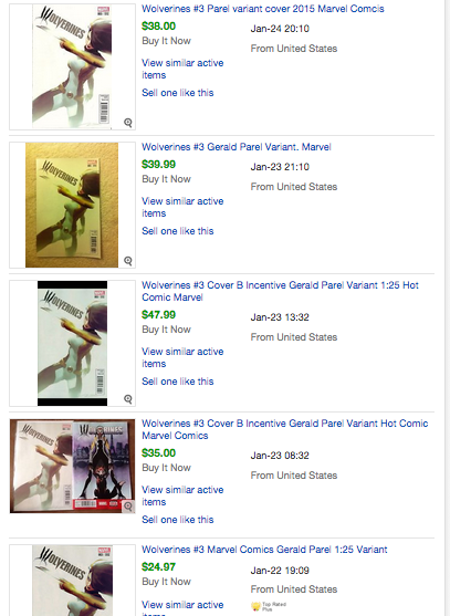 This week Wolverines #3 came out introducing another female character into the Marvel Universe, Fantomelle. So far the first print of this book has sold out at the distributor, however, the book to look for is the Gerald Parel 1:25 Variant cover (picture above). Featuring X-23.