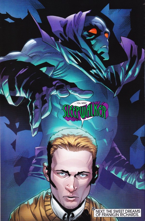 Last week Bleedingcool broke the Sleepwalker story. At the end (the last page) of the most recent Fantastic Four Issue (#642) – this appears