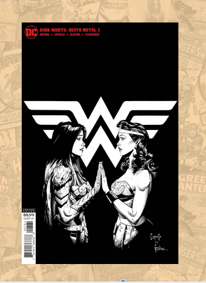 While the Future State Wonder Woman #1 isn’t selling above its $3.99 cover price, Dark Night Death Metal #7 has exploded online. Dark Night Death Metal #7 is the last issue of this mini-series that leads up to and into the new Future Shock event which could make this one panel appearance in its pages the real first appearance of this character. Dark Night Death Metal #7 has a few open order covers – the real winner being the Cover A featuring two versions of Wonder Woman and artwork by Greg Capullo. There is also a 1:100 black and white sketch version of this cover which should also be a real talking point this week.